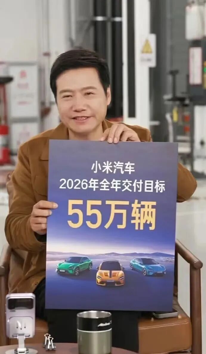 本月早些时候,小米创办人、董事长兼CEO雷军在直播中宣布小米汽车2026年全年交付目标55万辆。