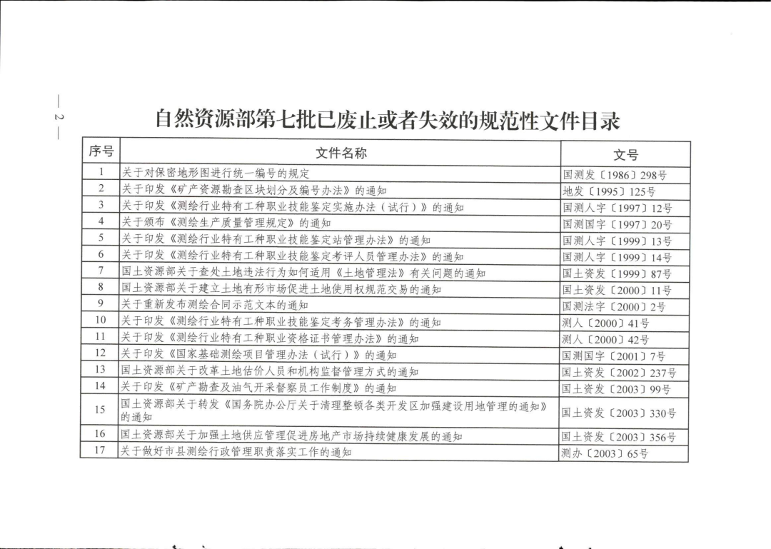 自然资源部关于公布第七批已废止或者失效的规范性文件目录的公告