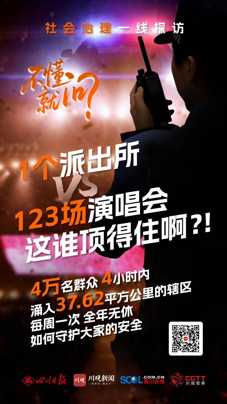 从2023年9月开始,几乎每个周末,成都东安湖体育公园都有大型演唱会,两年多120多场,单场观众最高4万人,派出所民警场场要来看。