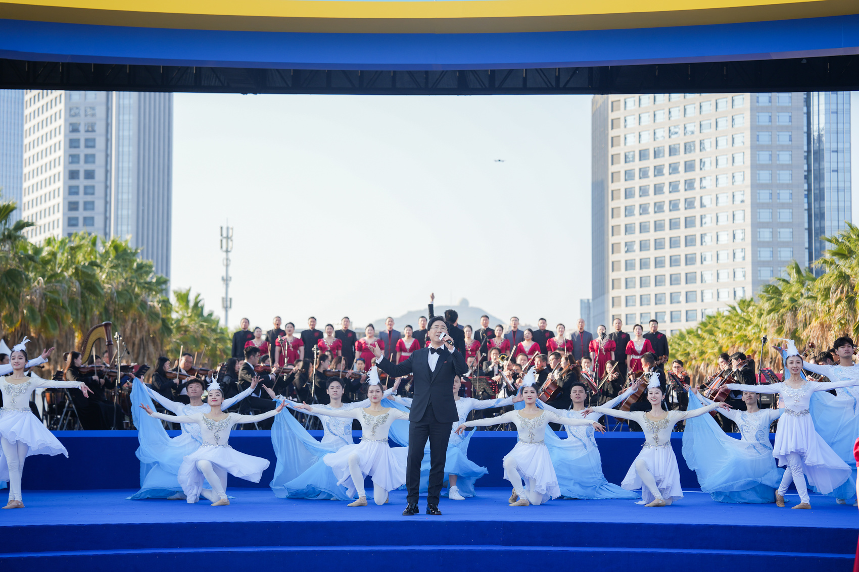 歌唱家廖昌永与厦门市直机关合唱团、厦门歌舞剧院、厦门爱乐乐团共同演绎歌曲《大厦之门》,唱出“大厦之门,文明之城”的风采。袁矛 摄