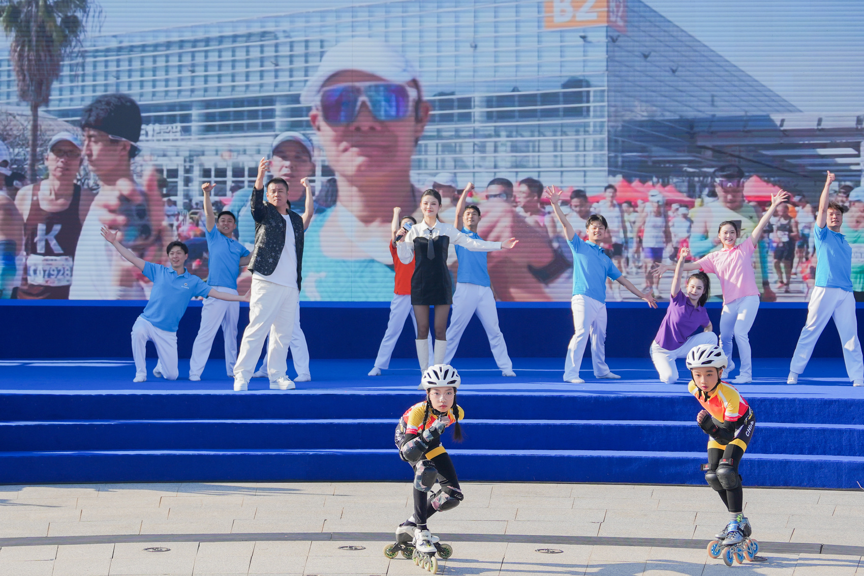 活力满满的厦门马拉松主题曲《追光》瞬间点燃全场,唱出了对梦想的追逐,展现了体育赋予城市活力,城市滋养体育的内涵。袁矛 摄