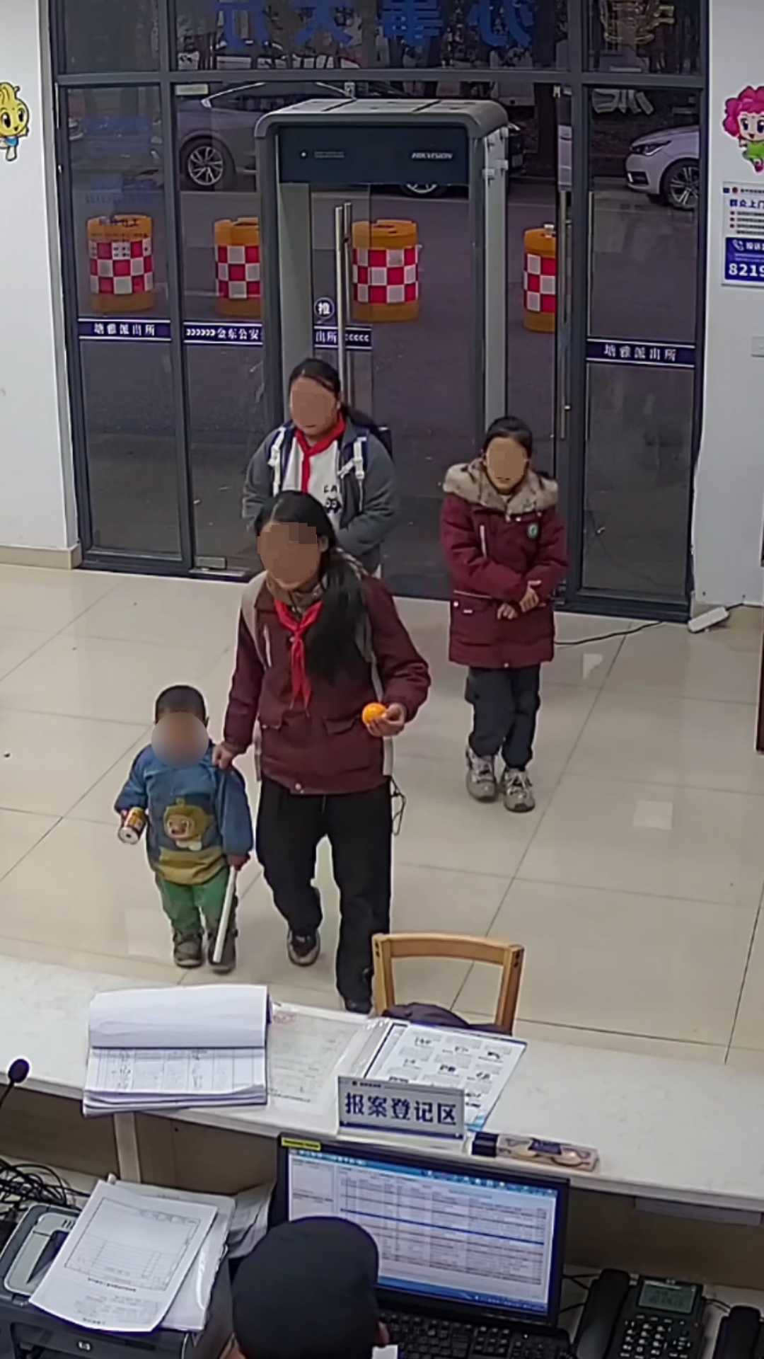 监控视频显示,三位同学立即上前将男童扶到路边安全区域。“由于周边没有看到小男孩的家长,他自己也言语不清、无法说清家庭信息,三人便决定带着男童来到我们派出所寻求帮助。”章警官说。