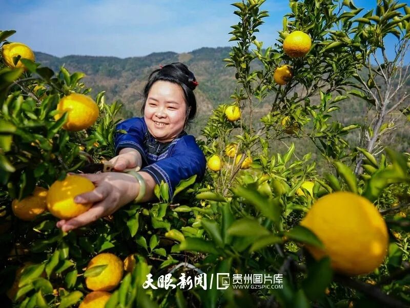 榕江县忠诚镇干烈村兴农鲜果家庭农场,村民正在采摘黄金柚。潘邵平 摄