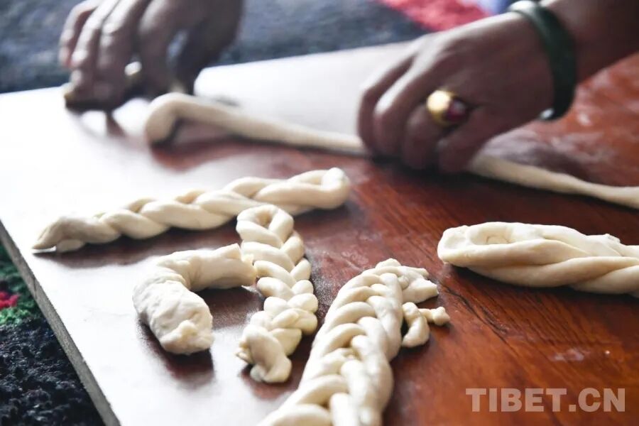 图为萨迦县雄麦乡扎果村村民在新居内制作传统新年点心“卡塞”(摄于2026年1月6日) 摄影:赵振宇
