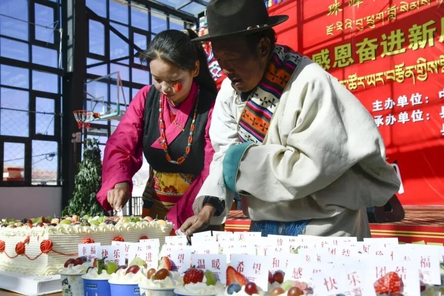 图为定结县郭加乡村民切开了庆祝新居新生活的大蛋糕(摄于2026年1月6日) 摄影:赵振宇