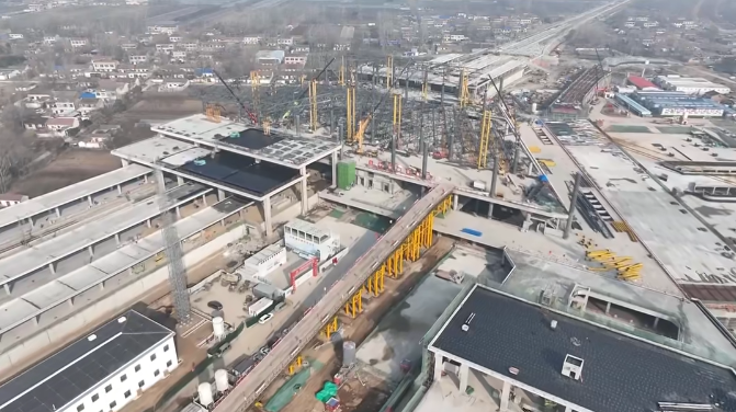 其中,站房钢结构安装已经完成55%左右,计划1月10日整体吊装,为全力保障项目按节点完成,元旦期间项目建设不停工、不放假。各参建单位人员全部坚守岗位,确保2026年6月项目建设完成并投入使用。”