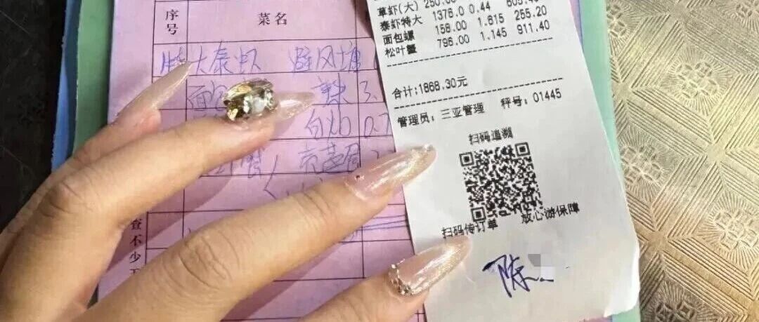 此前,有网友发帖称,与家人在三亚旅游时,被非运营车辆拉到海鲜店吃饭,4道海鲜与2个椰子共消费1930元。点菜时,服务员强调“整个三亚都是这个价格”。