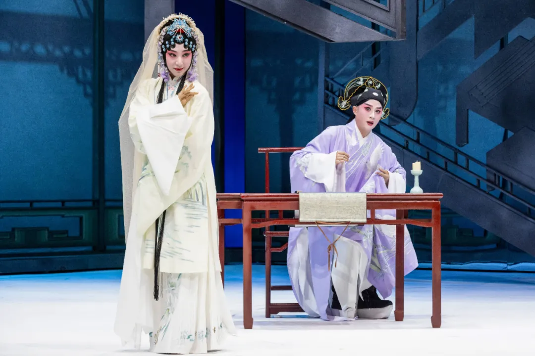 剧目选择策略则是“两条腿走路”,一条是坚守经典的当家戏,如黄梅戏《女驸马》、京剧《西厢记》等;另一条则是拥抱创新的新编戏,比如武侠风格的越剧《鹿鼎记》,昆曲《重逢〈牡丹亭〉》等。