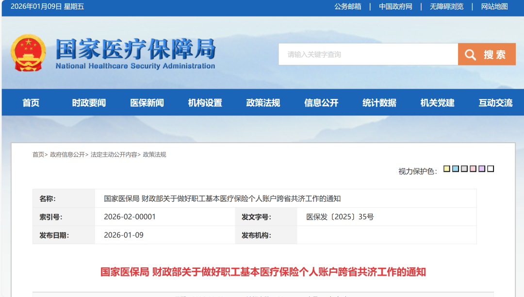 国家医保局会同财政部1月9日发布《关于做好职工基本医疗保险个人账户跨省共济工作的通知》,进一步优化个人账户共济政策,打破地域限制,强化家庭互助功能,将职工基本医疗保险个人账户共济范围从省内拓展至全国。