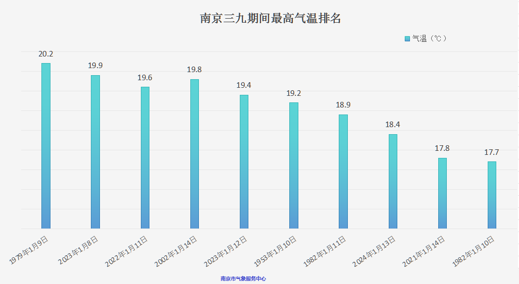 南京“三九”期间最高气温前十位