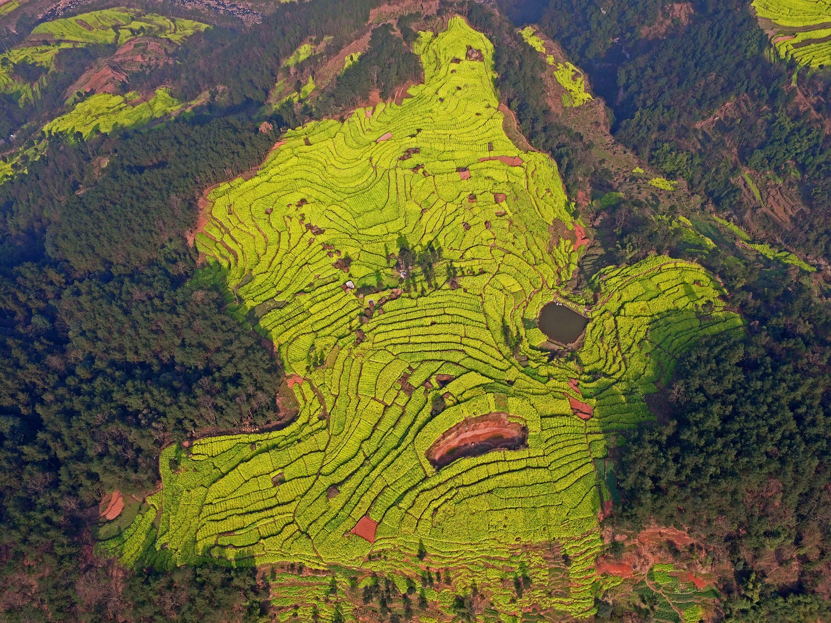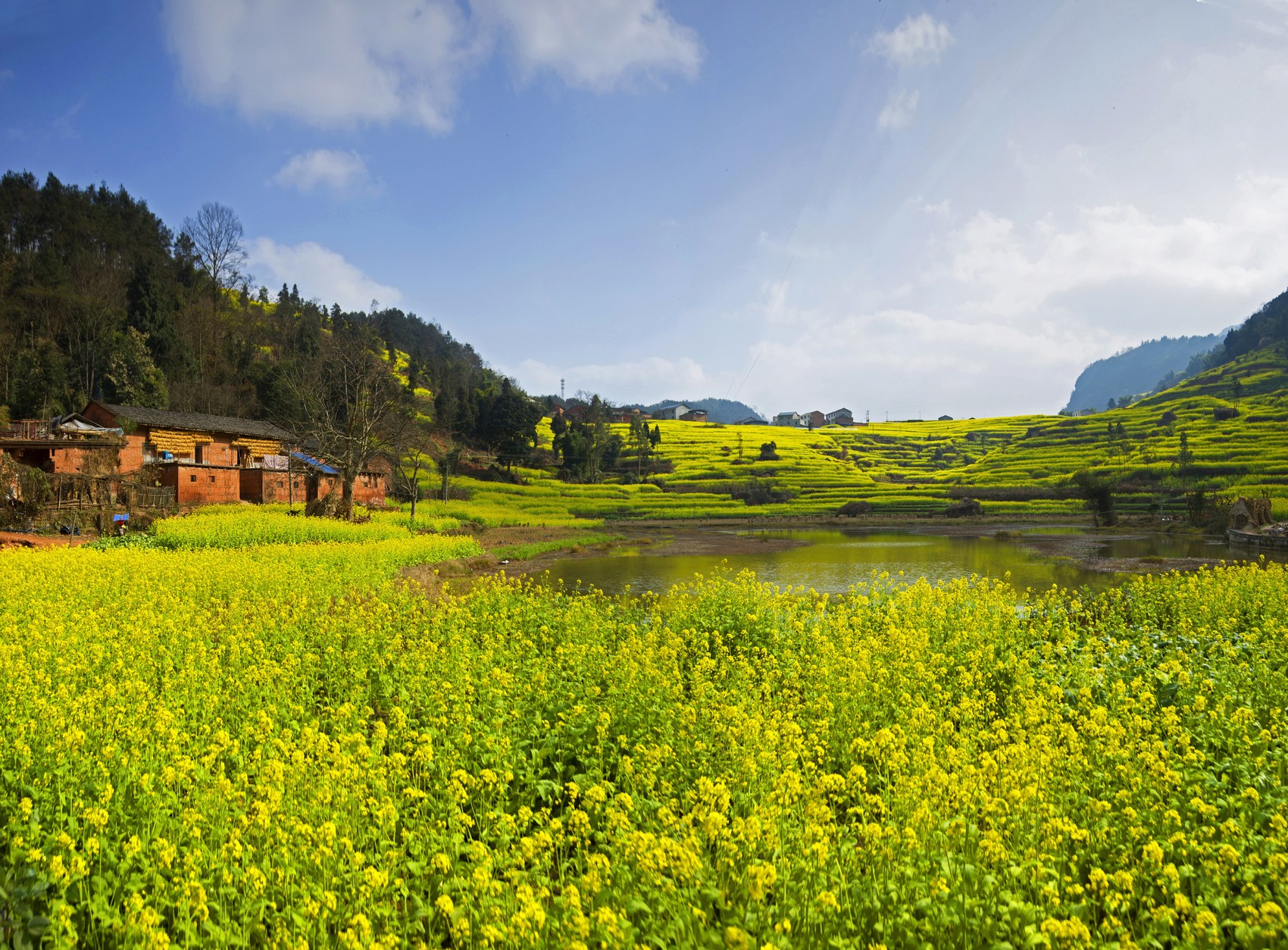 这方金色花海的主角,是当地特有品种“中都黄油菜”。得益于中都河流域干热少雨的独特气候,这里的油菜花比川内许多地方都要提前两个多月盛开,成为四川乃至西南地区最早迎接春天的油菜花观赏地之一。