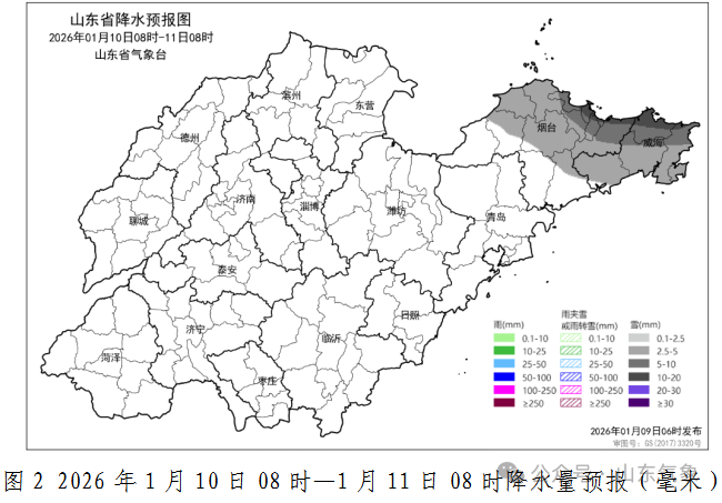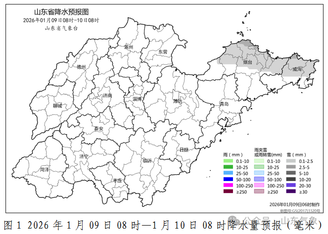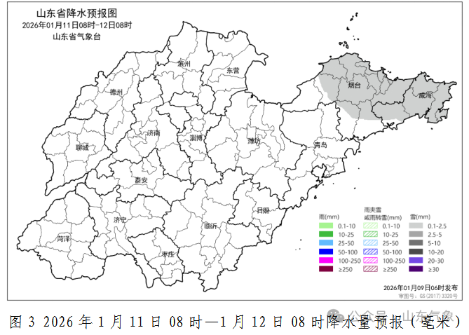 烟台北部和威海有明显降雪