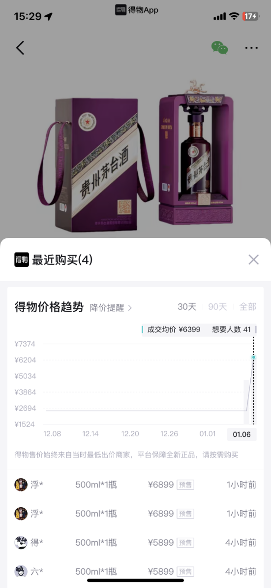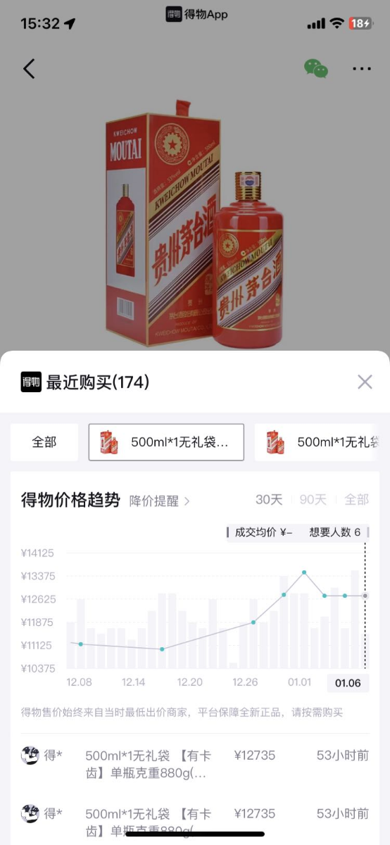 更引人注目的是历史数据对比:2014年推出的首款马年生肖茅台,在得物平台成交价已达12735元,较当初849元的发售价上涨近14倍,年均增长率超过100%。