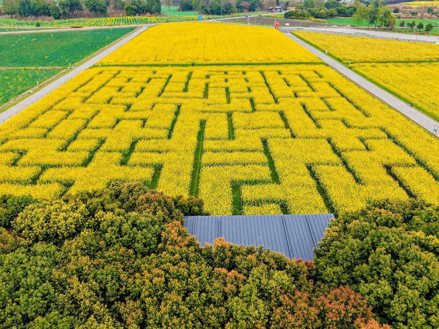 鸟瞰油菜花组成的金色海洋
