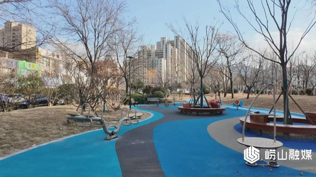 崂山区城市管理局园林绿化管理科工作人员 龚利军:劲松五路口带公园在改造提升后,在功能空间上分成南北两区,北区以动为主,有篮球场健身设施等;南区以静为主,有休闲廊架座椅等能满足市民对不同室外活动的需求。