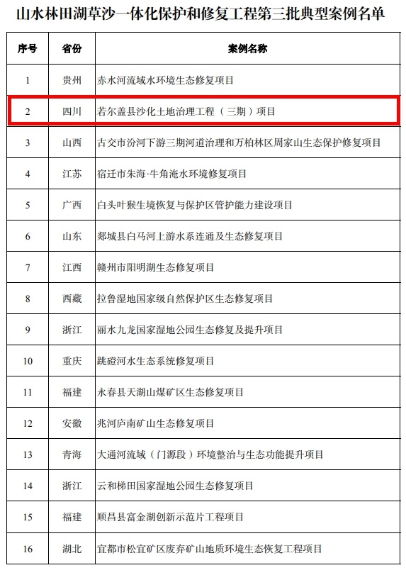 图为山水林田湖草沙一体化保护和修复工程第三批典型案例名单。图片来源:财政部