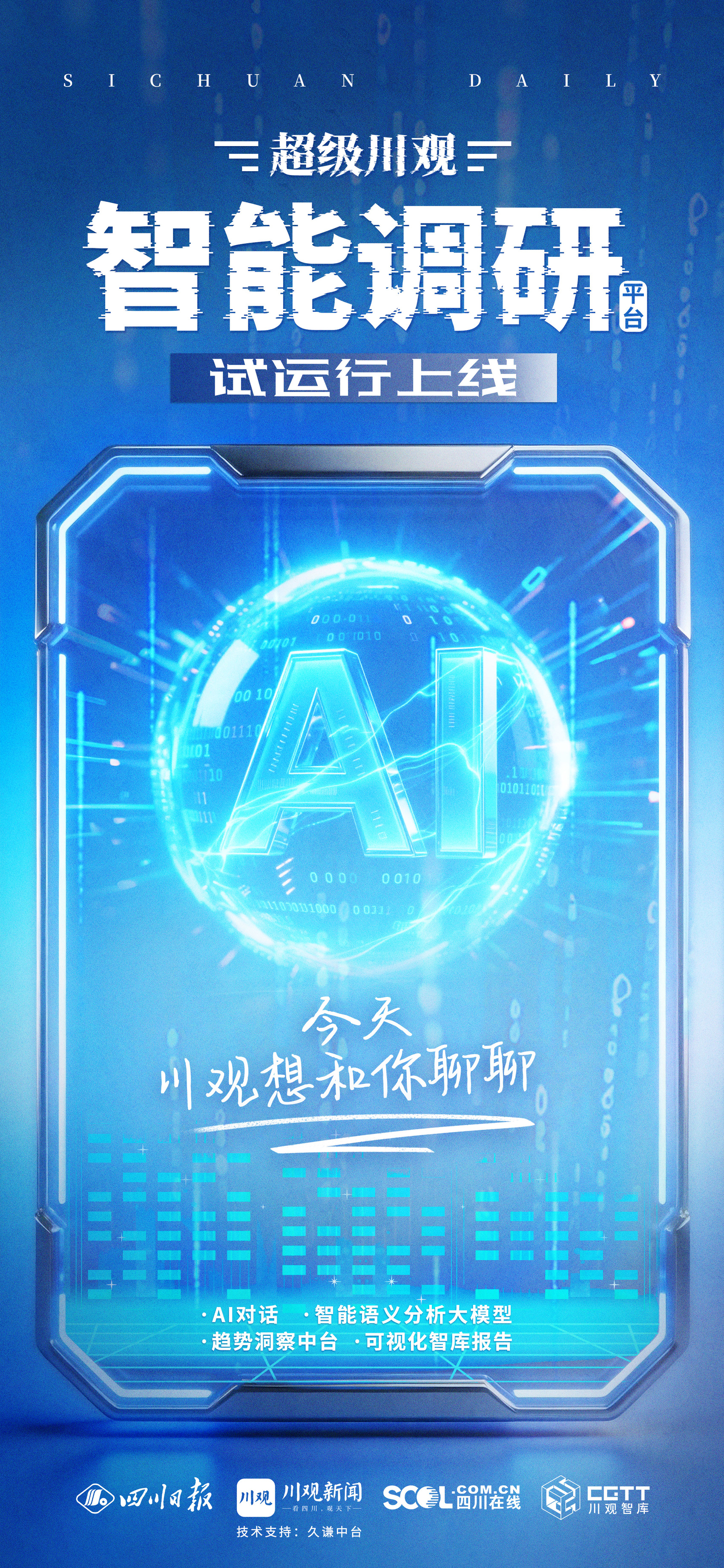 今天,我们联合久谦中台一起启动一项关于“聆听”的公共实验——“智能调研”平台上线。我们想将川观新闻亿级用户的声音,与这片土地发展脉搏相连,让用户的真实感知汇聚成公共智慧。