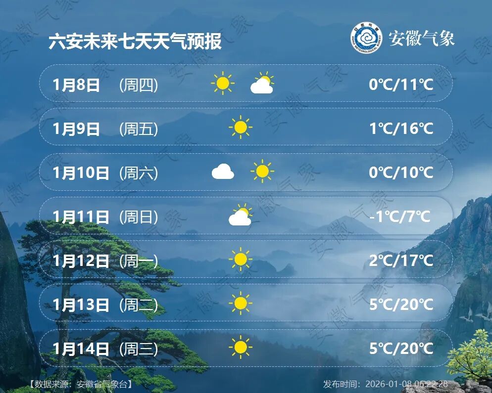 安徽主要城市一周天气预报: