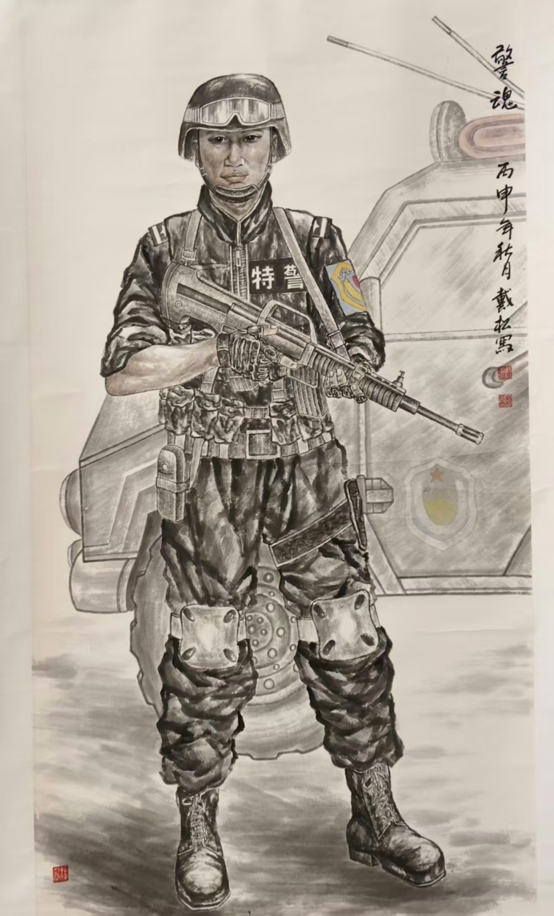 本次展览分为 “墨韵警魂”“丹青警风”“光影警事” 三大展区,每一幅作品都是一段忠诚叙事,每一处笔触都饱含使命担当。
