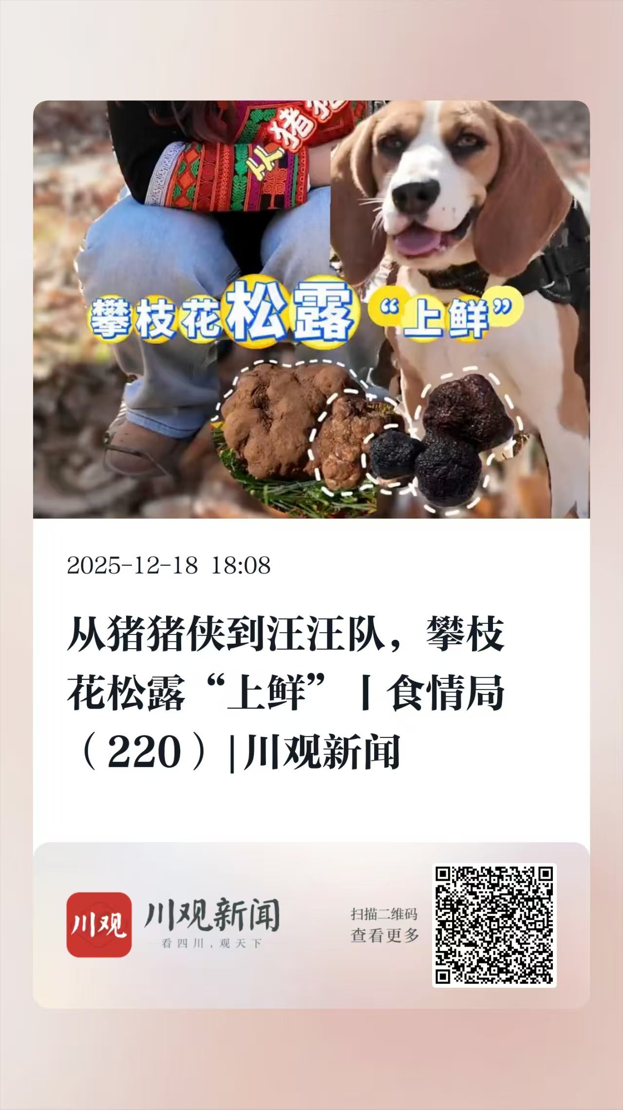 靠着母猪闻、狗狗找的“菌中爱马仕”,攀枝花松露上鲜了!松露是一种生长于地下的野生食用真菌,因其浓郁而独特的香气跻身世界高端食材,与鹅肝、鱼子酱并称为“西方三大美食”。从前,松露被贴上“欧洲进口”“天价食材”标签。如今,攀西及周边地区的松露,因为果形好、香味浓,成为消费者追捧的美味。这里已成为我国松露的重要产区,占全国总产量的50%。本期食情局“好物雷达”已开启,带你去选最棒的松露。