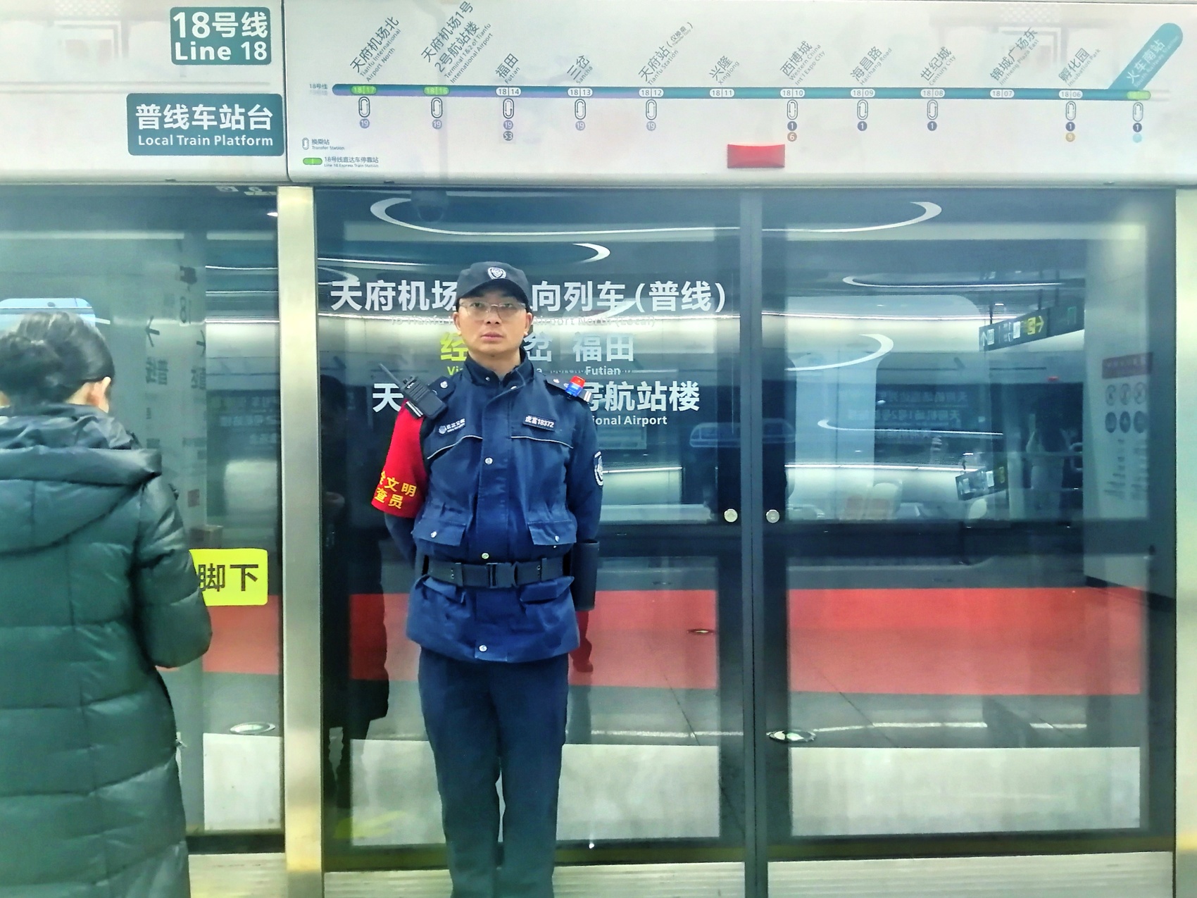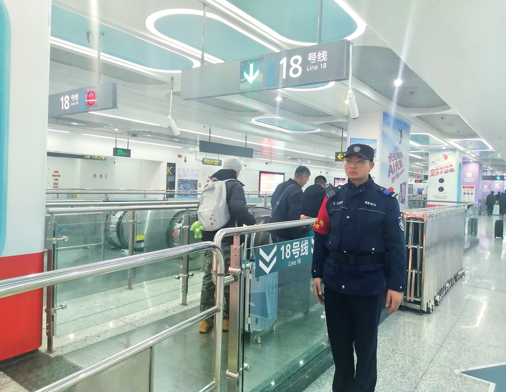 1月8日下午,记者电话联系上了视频中的主人公——27岁的成都地铁安保人员何沁。他说,那天是他上岗的第七天。回忆起当时的场景,他直言一切都很自然。当天,正在站厅巡逻的他通过对讲机接到车控室通知,18号线有乘客携带大件行李换乘,需要帮助。他一路小跑赶到站台,便看到一位阿姨背着背篓、肩挑重担,正吃力地寻找换乘通道。