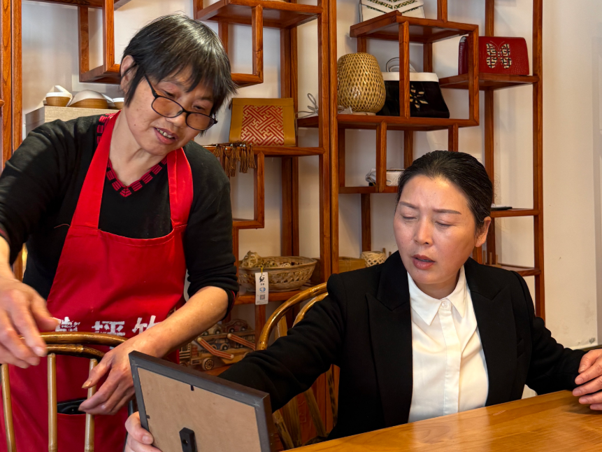 这场对话让蒲彩虹看见非遗传承的更多可能:“原来手艺能成为产业,能让妇女们在家门口体面挣钱。”她毛遂自荐,主动承接起“非遗进校园”项目,就此开启传承之路。