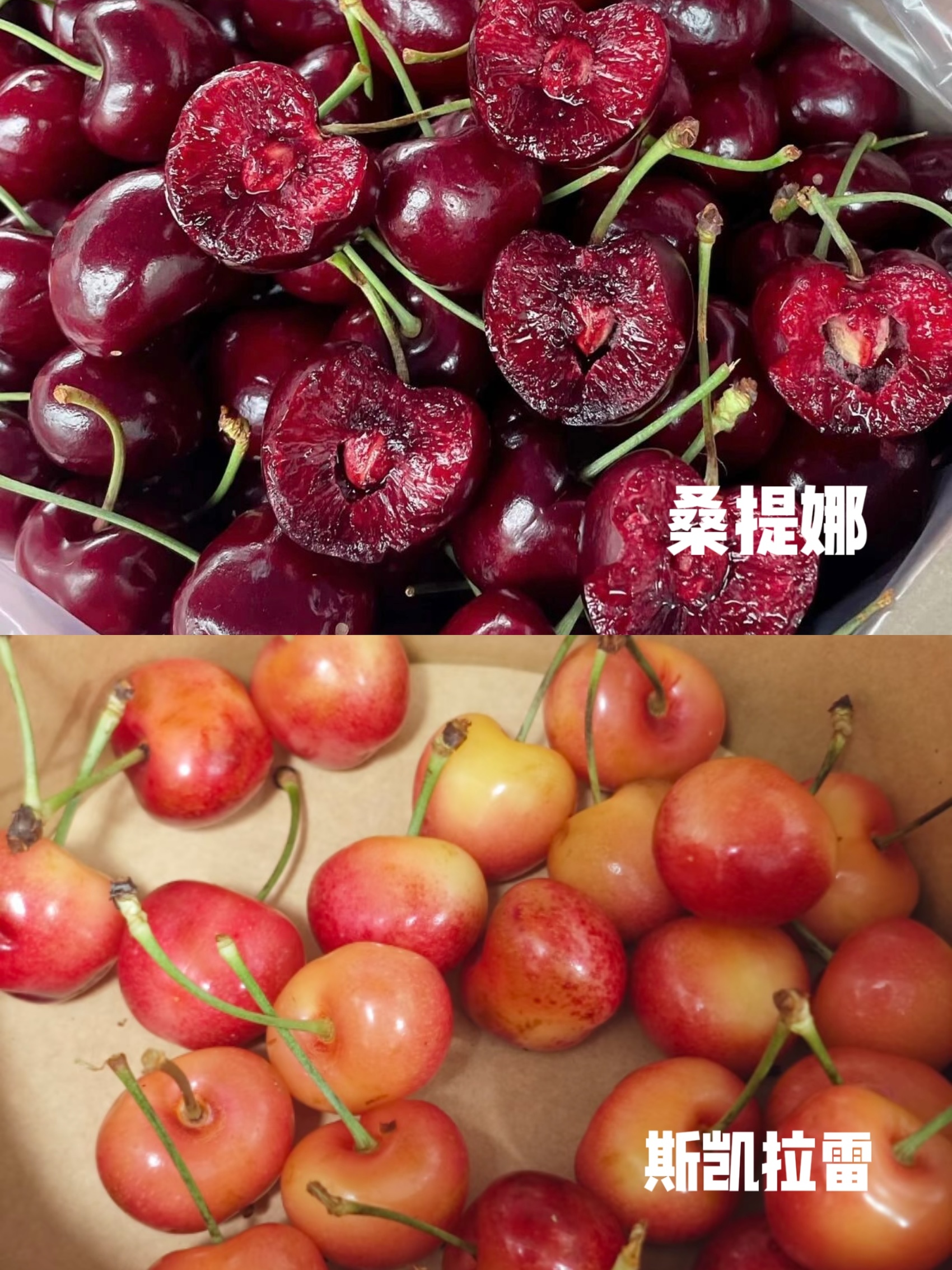 辨颜色:特别纠正一个常见误区——“并非颜色越深就越甜”。车厘子的色泽因品种而异,深红色、紫红色品种(如“桑提娜”“科迪亚”“雷吉拉”)和黄红色品种(如“雷尼”“斯凯拉雷”)的甜度都很高,不能单凭颜色判断。