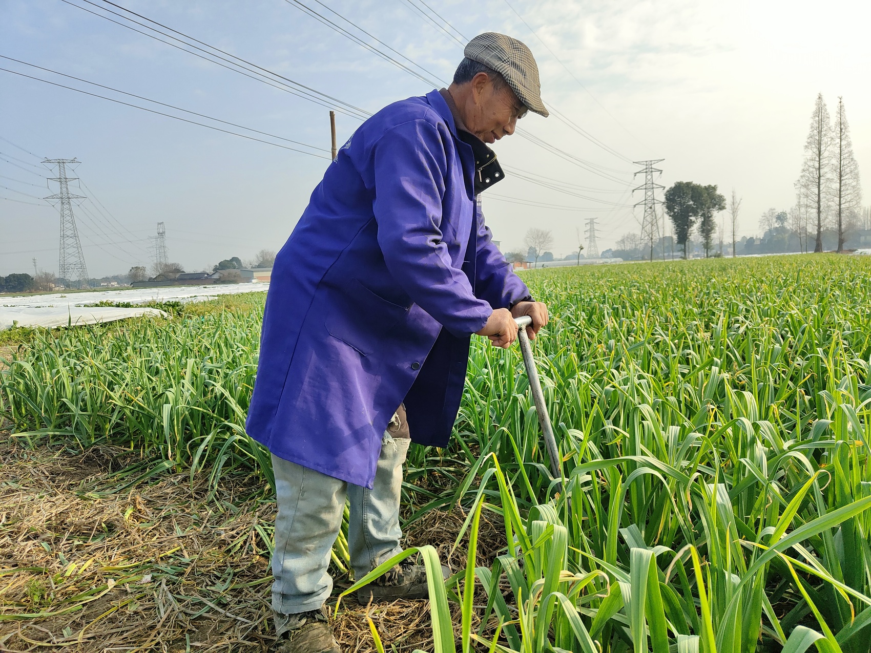 菜农正在挖蒜苗。