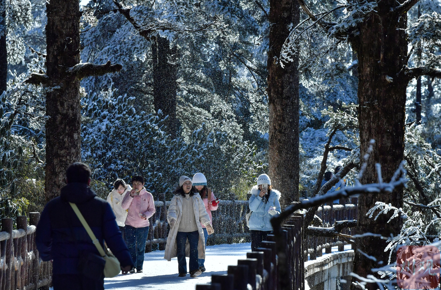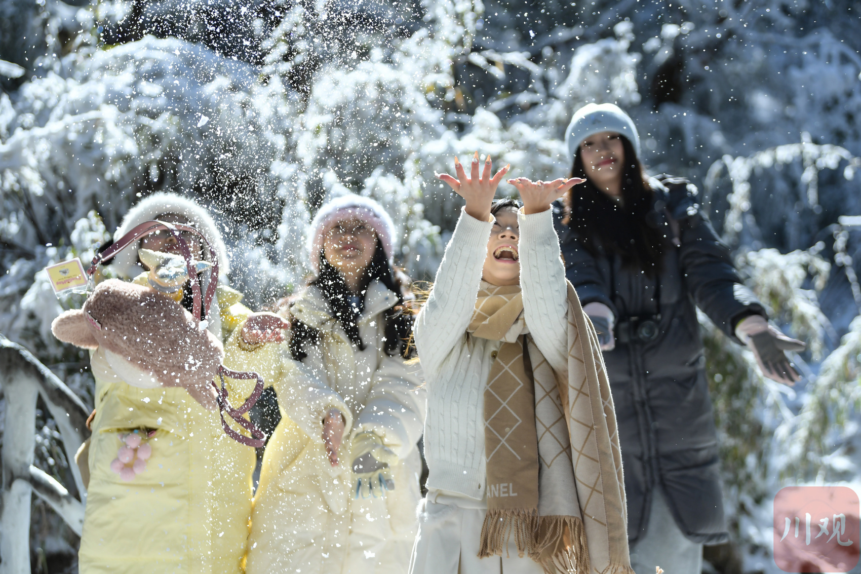 2026年1月9日,雪后的眉山市洪雅县瓦屋山景区犹如童话世界,吸引众多游客前来赏雪游玩。
