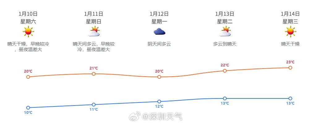 据@深圳天气 消息未来几日天气持续晴燥昼夜温差大大家注意补水和用火用电安全