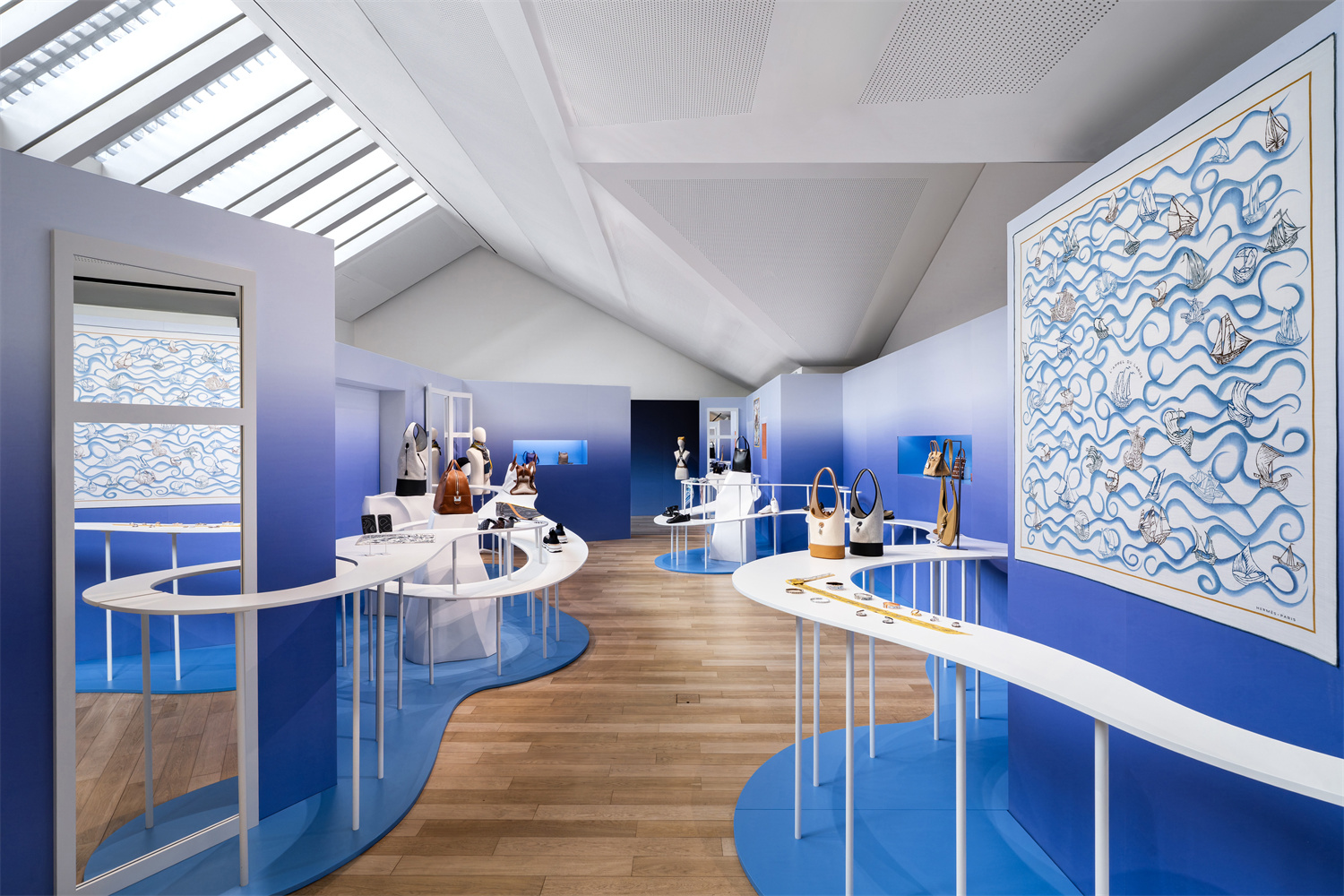 1月8日,爱马仕2026春夏新品系列预览活动在上海举行。现场以渐变蓝、渐变绿两抹鲜亮的颜色,构筑起两个展览空间,分别烘托爱马仕2026春夏新品系列配饰和家居单品。