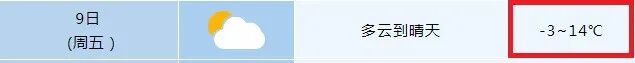 今天合肥最低气温-3℃最高气温14℃ 温差高达17℃ 下周二合肥最低气温-1℃最高气温17℃ 温差更是高达18℃