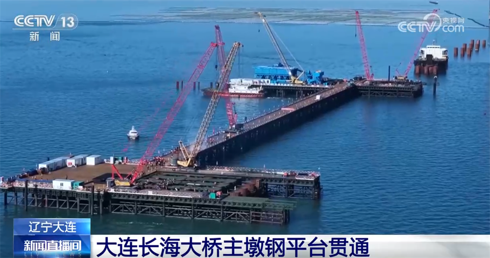在施工现场记者看到,随着最后一段桥面结构通过大型吊装机械完成精准对接,大连长海大桥工程的关键节点主墩钢平台实现连通,贯通后的主墩钢平台将成为长海大桥项目建设的关键运输通道。