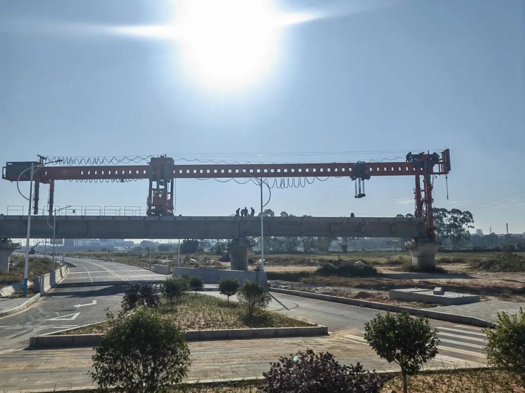 架梁期间,项目周密制定专项施工方案,通过加强技术培训、做实安全交底、严格过程管控等举措,筑牢安全作业屏障。现场采用自动化程度高、机动灵活、安全可靠的TJ180架桥机与98吨龙门吊协同施工,为架设任务高效推进提供了有力保障。