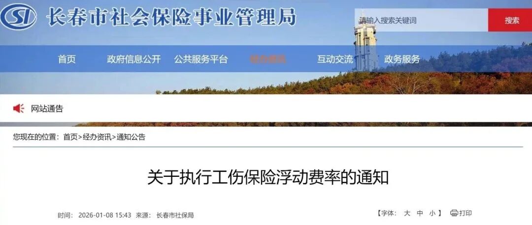 1月8日,长春市社会保险事业管理局发布《关于执行工伤保险浮动费率的通知》。具体如下: