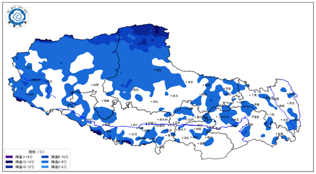 降温预报:11日至12日,那曲、阿里、日喀则北部、昌都中部和北部有4~8摄氏度降温,局地降温幅度可达10摄氏度以上;拉萨、山南、林芝、昌都南部、日喀则西部和南部有3~6摄氏度降温,局地降温幅度可达8摄氏度以上。
