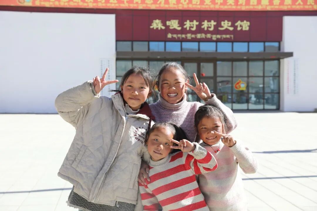定日县长所乡森嘎村村史馆前孩子们开心合影