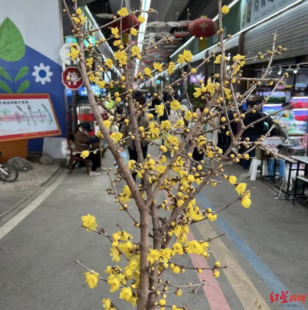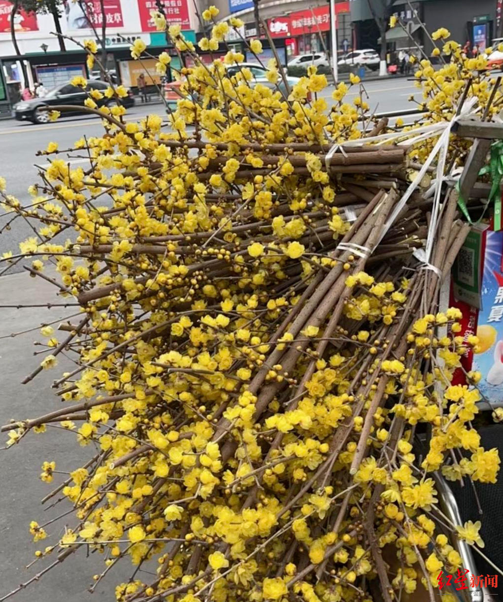 不只是花市,成都的大街小巷中,也有不少商贩推出了幽香的腊梅。一位商贩告诉政事君,他们很多都是从天府新区兴隆街道采购的腊梅。进入十二月下旬,兴隆街道斑竹村的几百亩腊梅进入大量上市期,据悉,销售将持续至次年春天。