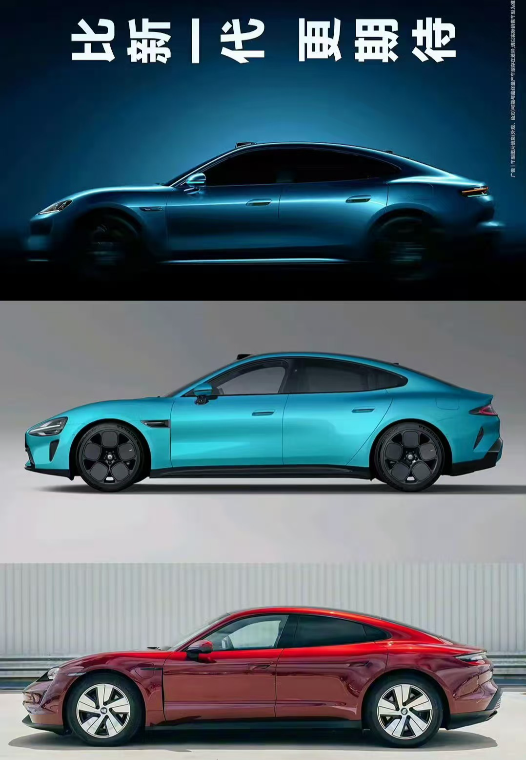有网友认为该款车外形与小米汽车、保时捷相似,戏称尚界Z7为“保时界”,还制作了三款车的对比图。而尚界官方在此前的直播中,明确提到Z7的外观可以“比肩欧洲某款百万级性能车”。