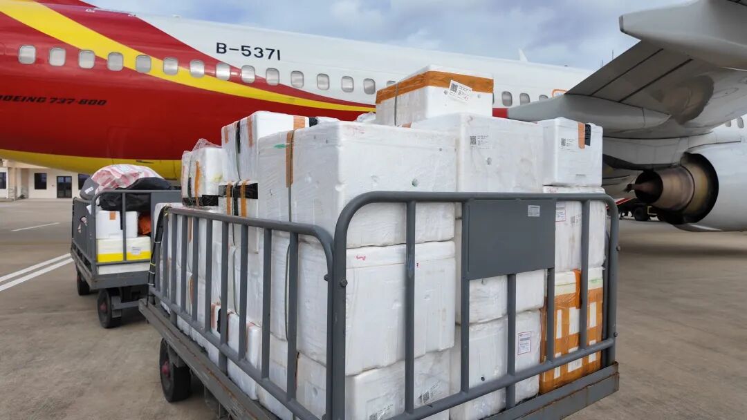 这些“同行者”,正是跨海而来的新鲜蔬菜和肉品。它们不是普通的托运货物,而是这趟航班备受呵护的“VIP乘客”。