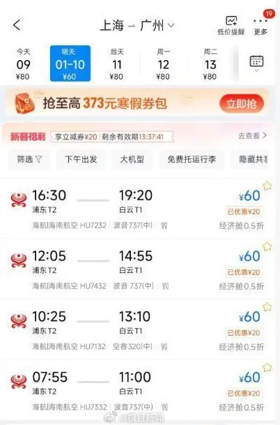 多名网友晒出了购票界面,还有人称,自己花360元买到了哈尔滨飞三亚的机票,还能免费改签任何时间。一名网友告诉记者,9日上午10点20分左右,海航的购票系统疑似出了BUG,多条航线出现了低价机票,约20分钟后就恢复正常了。