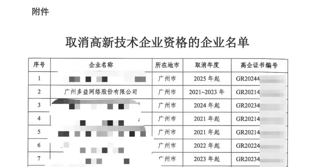 取消后,税务机关将按《中华人民共和国税收征收管理法》及有关规定,追缴上述企业自被取消高企资格所属年度起已享受的高新技术企业税收优惠。其中,广州多益网络股份有限公司被取消2021年至2023年度的高企资格。