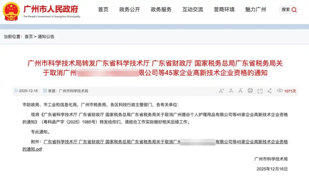 据红星新闻报道,12月16日,广州市科学技术局发布取消45家企业高新技术企业资格的通知,其中就包括多益网络。文件提到,根据日常管理发现的问题,广东省高新技术企业认定管理工作领导小组办公室按照《高新技术企业认定管理办法》等有关文件规定,经地市核查、专家复核、取消告知等程序,研究决定取消45家企业高新技术企业资格。