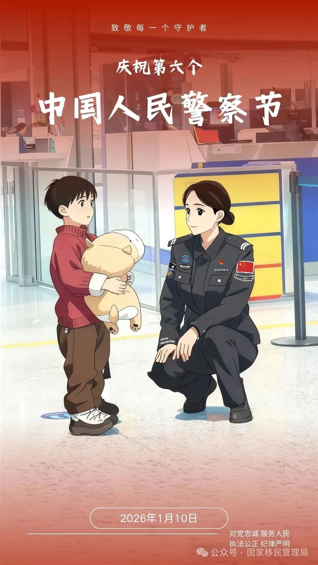 巍巍国门,见证使命担当;漫漫边关,激荡热血忠诚。2026年1月10日是第六个中国人民警察节,广大移民管理警察牢记使命,忠于职责,奋战在捍卫国家安全、维护口岸边境稳定、服务经济社会发展的最前沿,在这个光荣而特殊的节日,衷心祝愿战友们节日快乐!