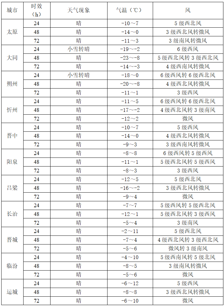 - 气温:降温超明显,北中部部分地方还会遭遇寒潮。最高温:北部及中南部山区-4~6℃,中南部其余地方6~13℃;最低温:高寒地区约-21℃,北部及中南部山区-18~-10℃,中南部其余地方-10~-3℃,早晚冻感十足。