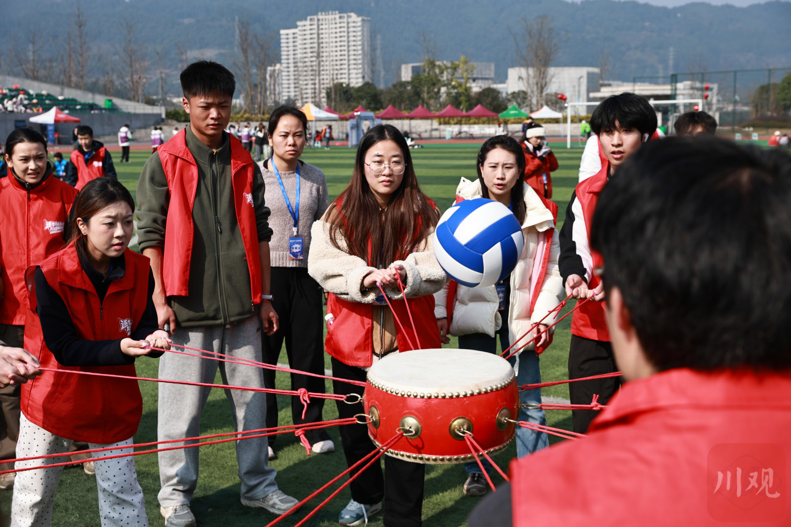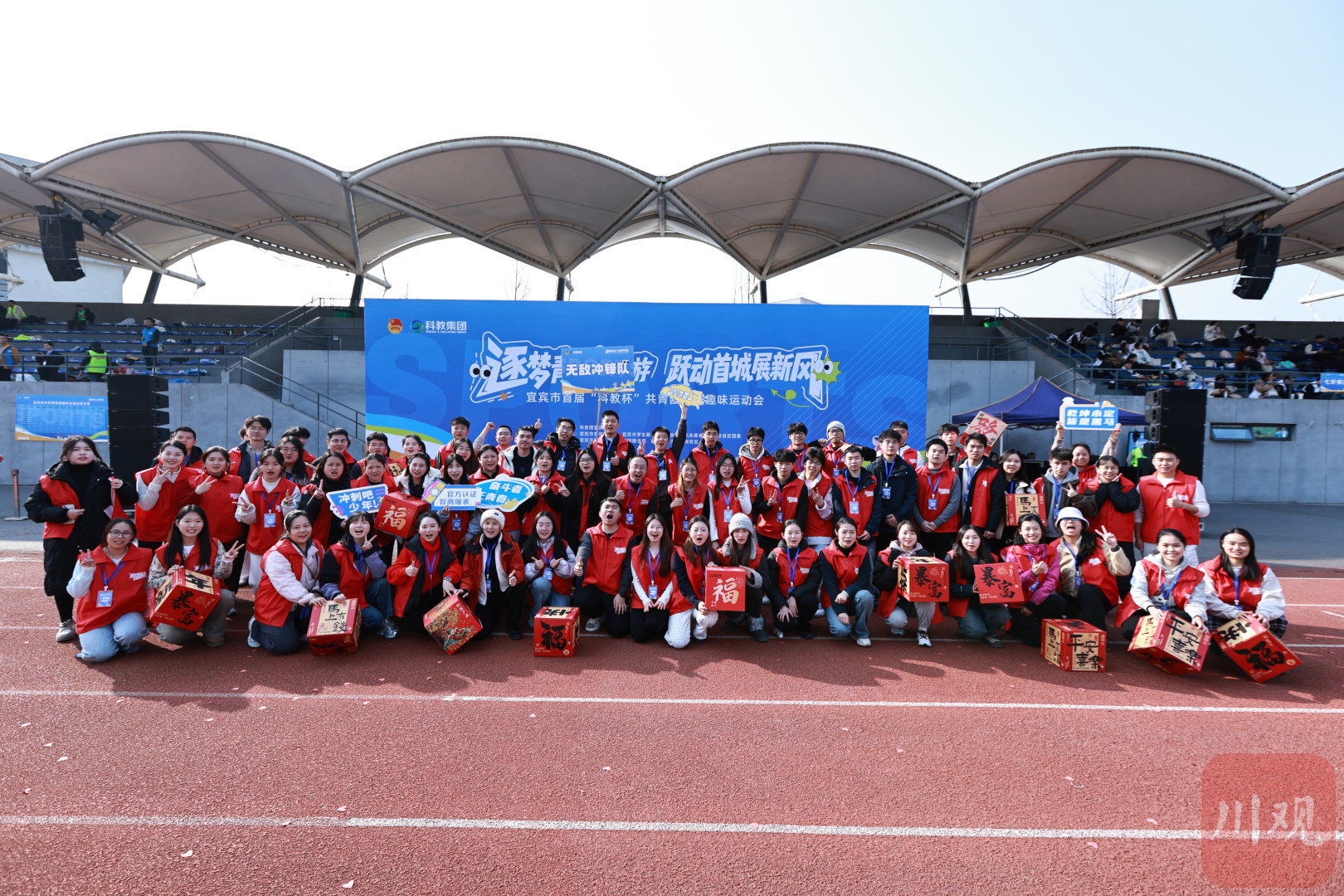 11支参赛代表团、1200余名青年人才同台竞技。1月9日,宜宾市首届“科教杯”共青团系统趣味运动会在成都理工大学宜宾校区开赛,集体跳绳、袋鼠跳接力、团队足球射门等11个兼具趣味性与协作性的项目,点燃了现场青年的运动热情。