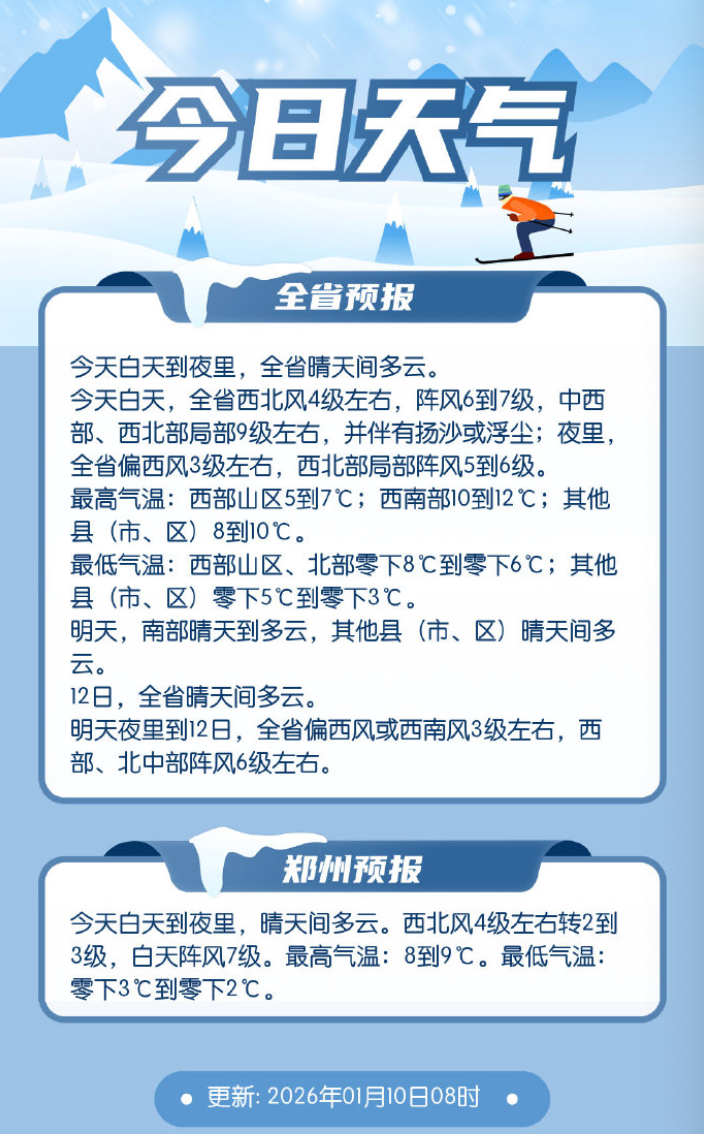 这个周末,河南全省的最高气温都将重回10℃以下。最冷的时候出现在明天(周日)清晨,全省的最低气温会再度跌破冰点。早晚出门的朋友,羽绒服、秋裤该穿还得穿,别拿身体硬扛。