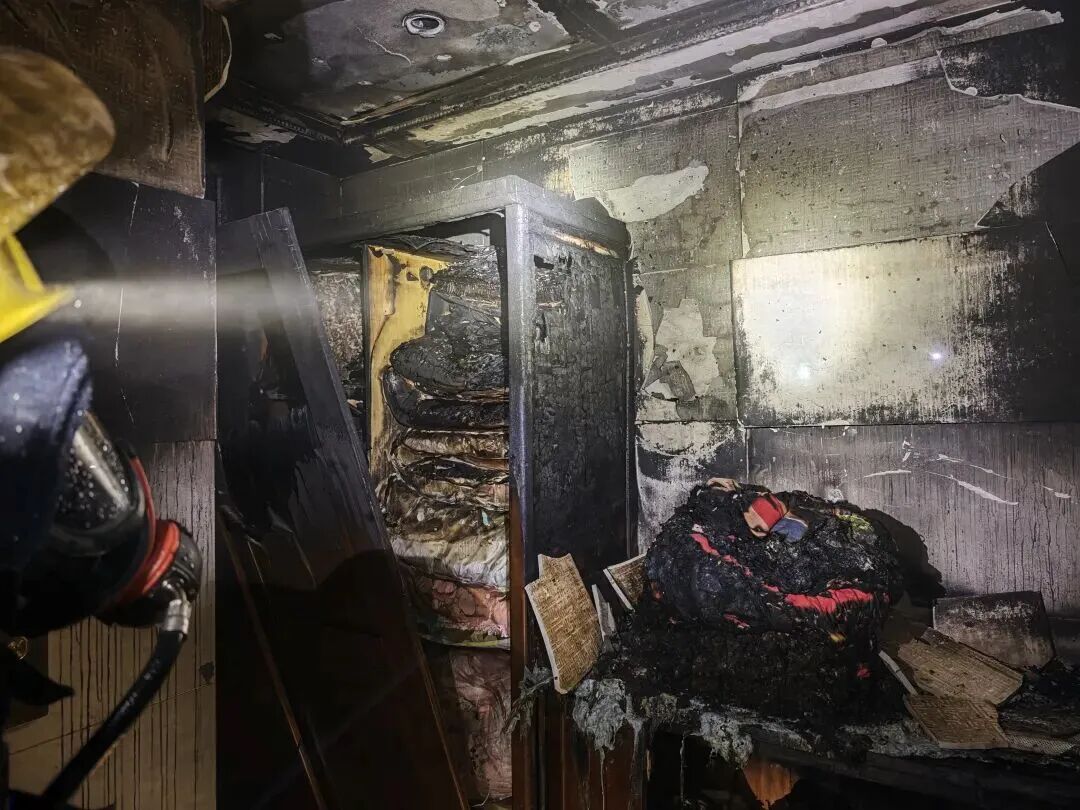 消防员接警后迅速赶赴现场,经勘察确认,大火集中在南侧房间,主要燃烧物为木床,所幸无易燃易爆物品堆放。