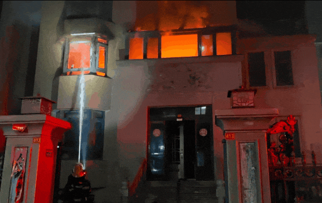 近日,江苏泰州海陵区一栋三层民房深夜突燃大火,烈焰裹着黑烟从房间窗口喷涌而出。