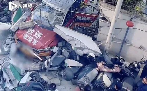 从市民拍摄的现场视频可以看到,教练车的前风挡玻璃粉碎,撞倒了多辆电动自行车。